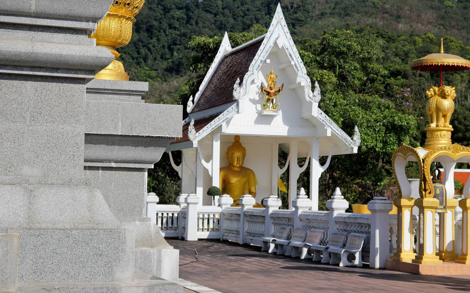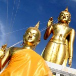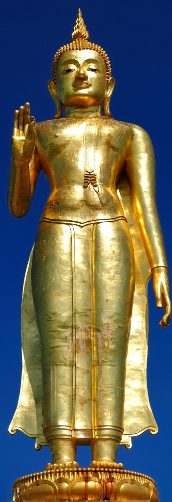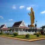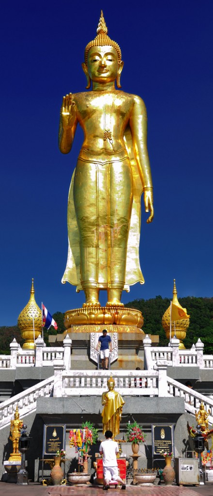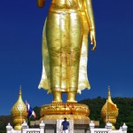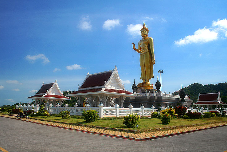 Phara Buddha Mongkol Maharaj seems to be the biggestBuddha statue of ” Bpang Haam Yaat ” (Buddha statue in the posture of the persuading relatives not to quaree) in southern Thailand with the height of 19.90 meters (25 meters height including its base) and 200 tons in weight which was established on the occasion of His Majesty King Bhumibhol’s 6th Cycle Birthday Celebration in 1999 with permission to have the emblem of the event attached on the basement of the Buddha stutue and was bestowed the name ” Phra Buddha Mongkol Maharaj ”